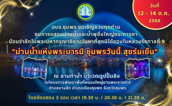 ชุมพรจัด “ม่านน้ำแห่งพระบารมี” ครั้งแรกทางใต้ น้อมรำลึกในหลวงรัชกาลที่ 9