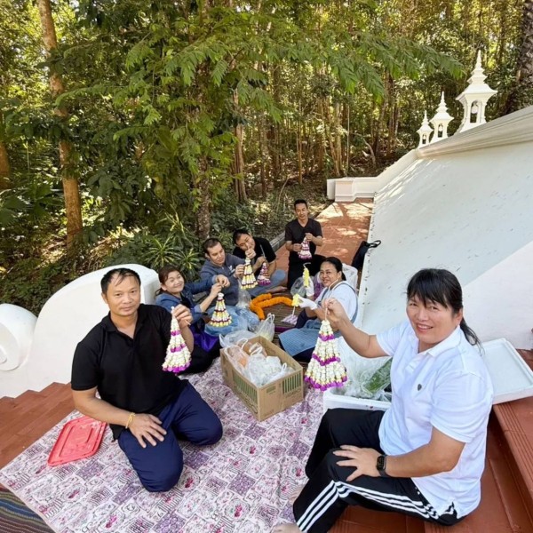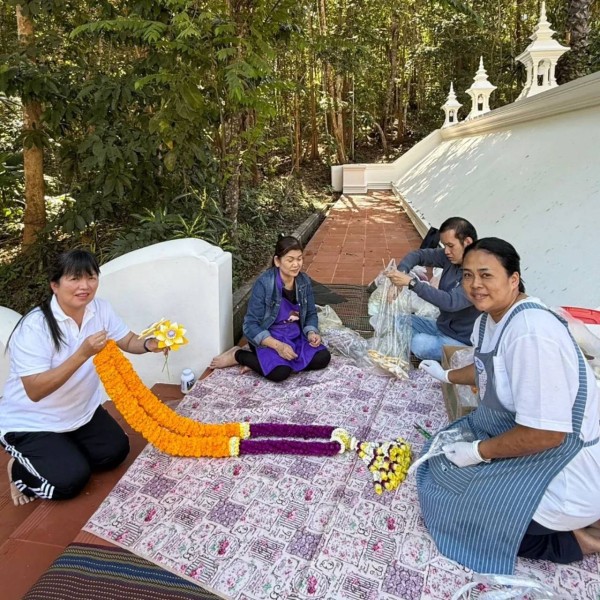 ศิริพร จงศิริ ผู้อำนวยการใหญ่ผลิตรายการคืนคุณให้แผ่นดิน ปวารณา พร้อมผู้ใหญ่ร่วมทำบุญและได้ให้ทีมงานร้านน้ำอ้อยดอกไม้สด ตลาดดอกไม้กาดหลวง เชียงใหม่ ช่างดอกไม้ฝีมือล้านนาได้จัดดอกไม้ถวายโทนดอกไม้สีฟ้า ,ดอกไม้สีเหลือง, และดอกไม้สีม่วง จัดดอกไม้ถวายงานในวันพฤหัสบดีที่ ๑๘ ธันวาคม ๒๕๖๘ งานสมโภชน์ ยกยอดฉัตร ๙ ชั้น เจดีย์ทั้ง ๓ ฉัตร เพื่อบูชาธรรมองค์สมเด็จพระสัมมาสัมพุทธเจ้าและเพื่ออุทิศถวายเป็นพระราชกุศลแด่ สมเด็จพระนางเจ้าสิริกิติ์ พระบรมราชินีนาถ พระบรมราชชนนีพันปีหลวง ณ วัดป่าศาลาปางสัก ( หลวงตามหาบัว ญาณสัมปันโน ) อำเภอดอยสะเก็ด จังหวัดเชียงใหม่