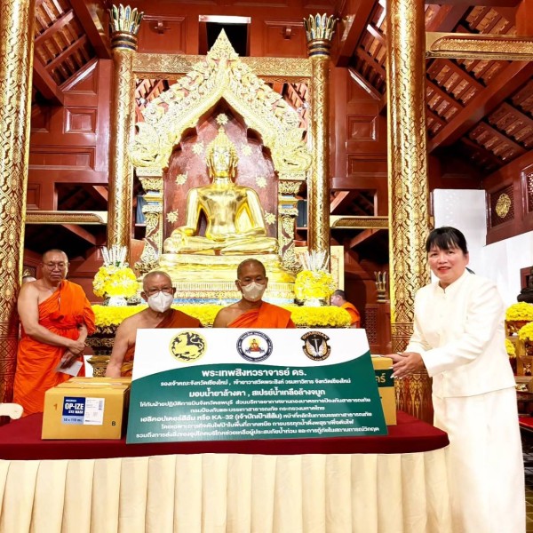 วันที่ 6 เมษายน เวลา 18.00 น. พระเทพปริยัติ (สอาด ขนฺติโก ป.ธ.๗) ที่ปรึกษาเจ้าคณะภาค ๗ เจ้าอาวาสวัดเจ็ดยอด (พระอารามหลวง ) , พระเทพสิงหวราจารย์ ดร รองเจ้าคณะจังหวัดเชียงใหม่ , เจ้าอาวาสวัดพระสิงห์วรมหาวิหาร จังหวัดเชียงใหม่ มอบน้ำยาล้างตา ๓ ลัง , สเปรย์น้ำเกลือล้างจมูก ๓ ลัง โดยมอบหมายให้คุณศิริพร จงศิริ ผู้อำนวยการใหญ่ผลิตรายการคืนคุณให้แผ่นดิน ( ผู้แทน ) มอบน้ำยาล้างตา , สเปรย์น้ำเกลือล้างจมูกให้กับฝ่ายปฏิบัติการบินจังหวัดลพบุรี ส่วนบริหารอากาศยานกองมาตรการป้องกันสาธารณภัย กรมป้องกันและบรรเทาสาธารณภัย กระทรวงมหาดไทย
