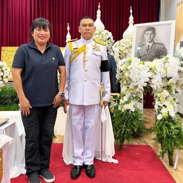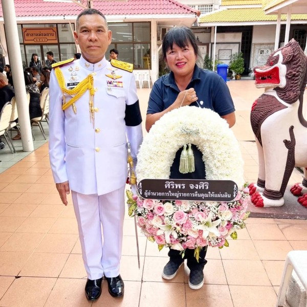 ศิริพร จงศิริ ผู้อำนวยการใหญ่รายการ “คืนคุณให้แผ่นดิน” นำพวงหรีดเคารพศพ คุณพ่อของภรรยา พลเอก สุรเทพ หนูแก้ว