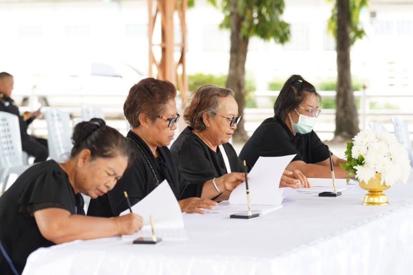 ภายหลังการประกอบพิธีถวายน้ำสรงฯ ผู้เข้าร่วมทุกภาคส่วนได้ร่วมลงนามแสดงความไว้อาลัย เพื่อแสดงความจงรักภักดีและรำลึกถึงพระราชจริยวัตรอันงดงามตลอดพระชนม์ชีพของพระองค์ท่าน ซึ่งทรงปฏิบัติพระราชกรณียกิจนานัปการเพื่อความผาสุกของราษฎรไทยทั่วทุกภูมิภาค