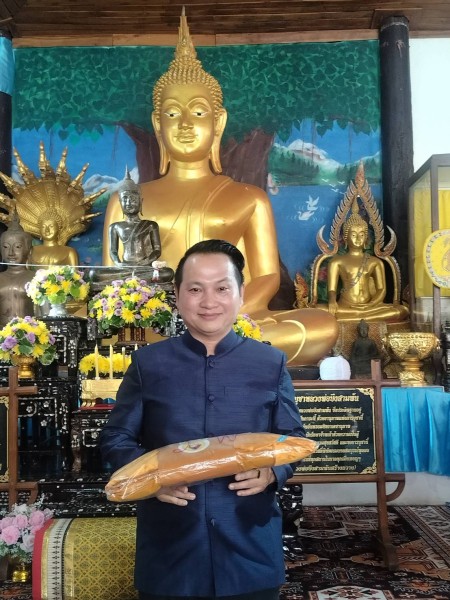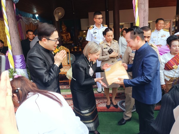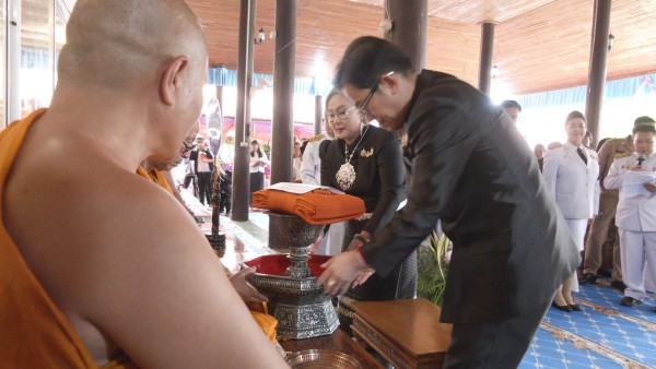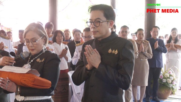 รองประธานสภาวัฒนธรรมจังหวัดเพชรบูรณ์ มอบผ้าไหมถวายแด่ประธานกฐินสามัคคี เพื่อความเป็นสิริมงคลและสืบสานพระพุทธศาสนา