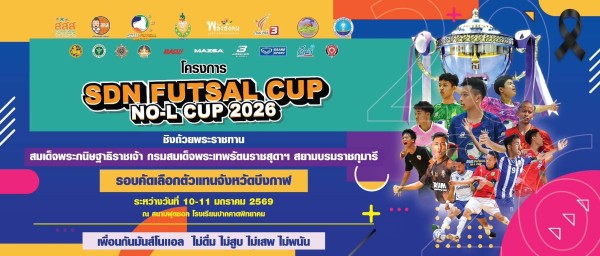 สำหรับการแข่งขันฟุตซอลเยาวชน SDN FUTSAL NO-L CUP 2026 ครั้งที่ 8 จัดขึ้นภายใต้แนวคิด“เพื่อนกันมันสโนแอล” (ไม่ดื่ม ไม่สูบ ไม่เสพ ไม่พนัน) ระดับจังหวัด รุ่นอายุไม่เกิน 15 ปี ประจำปี 2569 ณ สนามฟุตซอลโรงเรียนปากคาดพิทยาคม อำเภอปากคาด จังหวัดบึงกาฬ