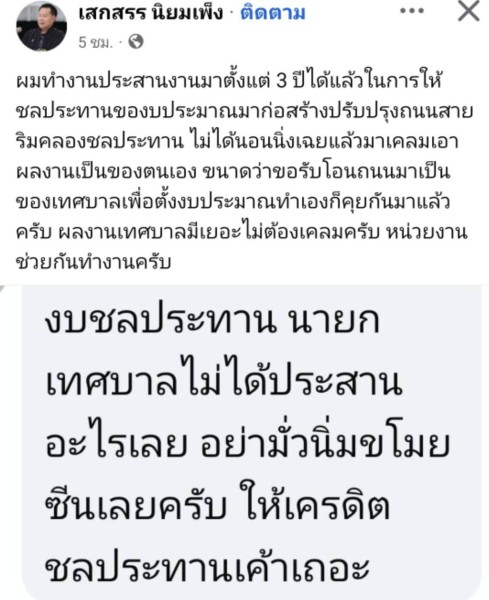 “งบชลประทาน นายกเทศบาลไม่ได้ประสานอะไรเลย อย่ามั่วนิ่มขโมยซีนเลยครับ ให้เครดิตชลประทานเขาเถอะ”
