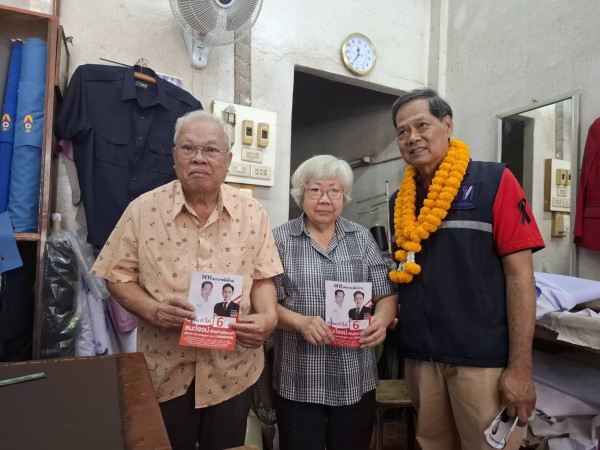 ฝั่ง นายจักรัตน์ พั้วช่วย ผู้สมัคร ส.ส.เขต 2 พรรคกล้าธรรม เบอร์ 5 อดีต ส.ส. 4 สมัย เปิดเกมสู้เต็มกำลัง อาศัยฐานเสียงเก่าและผลงานในอดีตเป็นหัวใจหลัก เดินสายพบประชาชนอย่างต่อเนื่อง หวังทวงคืนเก้าอี้เดิมในพื้นที่ที่เคยครองอำนาจมาอย่างยาวนาน