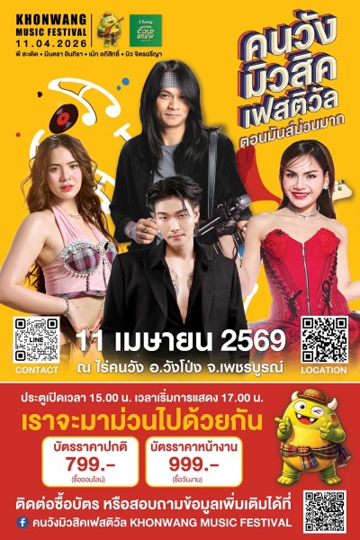 ทั้งนี้ ผู้ที่สนใจสามารถสั่งซื้อบัตรได้ผ่านช่องทางออนไลน์ Facebook: คนวังมิวสิคเฟสติวัล Khonwang Music Festival และ LINE: @khonwang_musicfest รวมถึงจุดจำหน่ายบัตรในพื้นที่ อาทิ ร้านทอง ร้านค้า และร้านบริการต่าง ๆ ในอำเภอวังโป่ง
